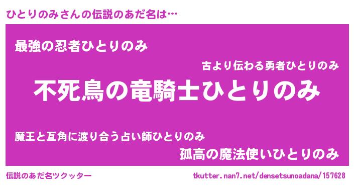 | ヒーロー風カッコイイあだ名 | 『スーパーヒトリノミ』『炎刃騎士ヒト』 |