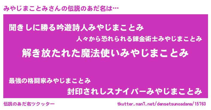 | 意味不明あだ名 | 『自称みやじまことみ』 |