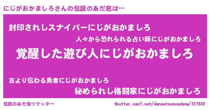 | 胡散臭い通販商品みたいなあだ名 | 『あなたにだけ特別に提供する世界で10本だけ現存している希少なブランデー…その名も「にじがおかましろ」』 |