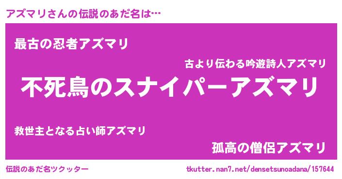 | 胡散臭い通販商品みたいなあだ名 | 『モテモテ間違いなし霊験あらたかなお札…その名も「アズマリ」』 |