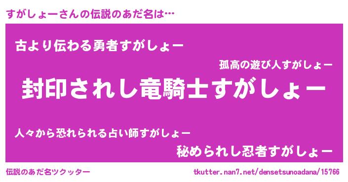 | 胡散臭い通販商品みたいなあだ名 | 『あなたにだけ特別に提供する100年もののヴィンテージワイン…その名も「すがしょー」』 |