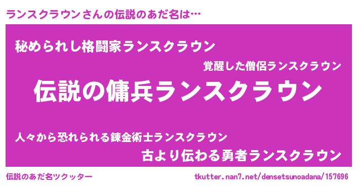 | 男性向けラノベタイトル風あだ名 | 『ランスクラウンの憂鬱』 |
