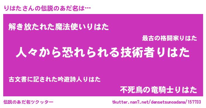 | 欧米人風あだ名 | 『りはた・ステッグマイヤー』 |