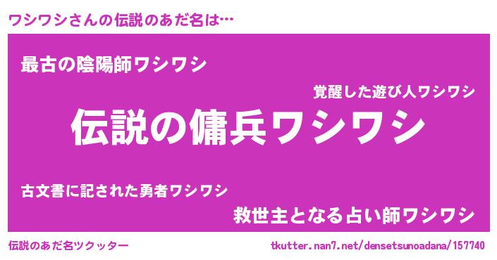 | ヒーロー風カッコイイあだ名 | 『スーパーワシワシ』『仮面ワシダー』 |