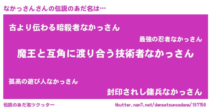 | 胡散臭い通販商品みたいなあだ名 | 『テレビで話題の高麗人参…その名も「なかっさん」』 |