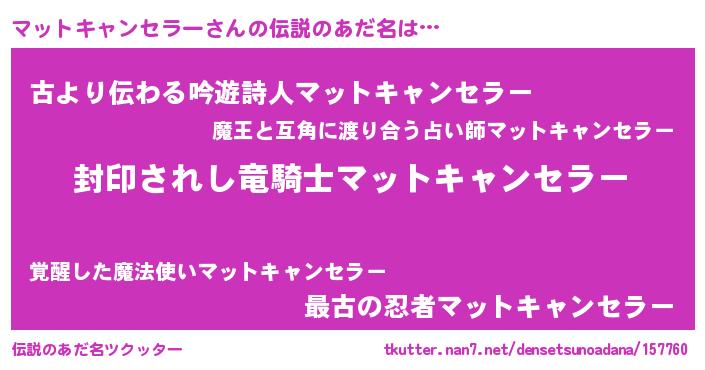| 欧米人風あだ名 | 『マイケルマットキャンセラー』 |