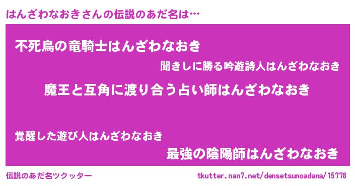 | ヒーロー風カッコイイあだ名 | 『仮面ハンダー』『ネオハンザワナオキ』 |