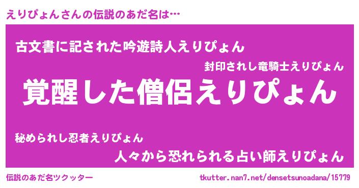 | 男性向けラノベタイトル風あだ名 | 『えりぴょんに滅ぼされるだけの簡単なお仕事です』 |