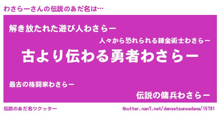 | ヒーロー風カッコイイあだ名 | 『ネオワサラー』『仮面ワサダー』 |