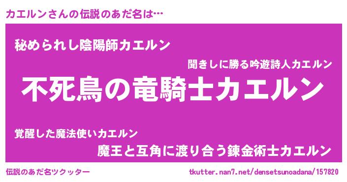 | ファンタジー風あだ名 | 『カエフェル』『エターナルカエルンー』 |
