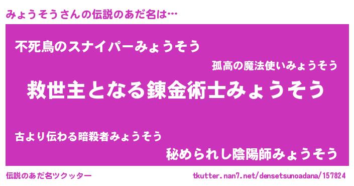 | ヒーロー風カッコイイあだ名 | 『天空の使者みょうそう』『仮面ミョダー』 |