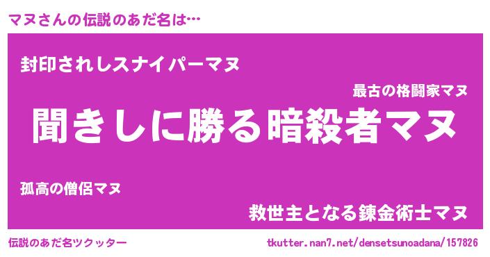 | 男性向けラノベタイトル風あだ名 | 『緋弾のマヌ』『はたらくマヌさま!』 |