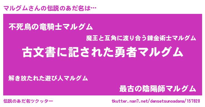 | 意味不明あだ名 | 『永久保存マルグム』『ペロリンマルグム』 |