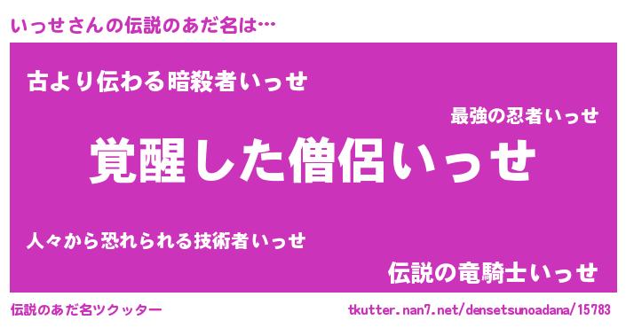 | ヒーロー風カッコイイあだ名 | 『最強戦士イッセ』『魔戒騎士イッ』 |