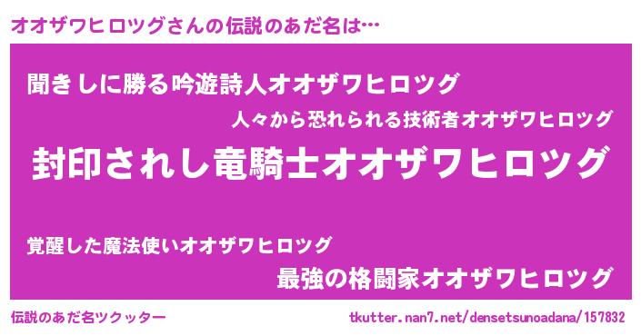 | 男性向けラノベタイトル風あだ名 | 『オオザワヒロツグアートオンライン』 |