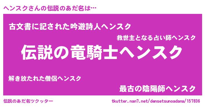 | ファンタジー風あだ名 | 『ヘンフェル』『ヘンディッシュ』 |