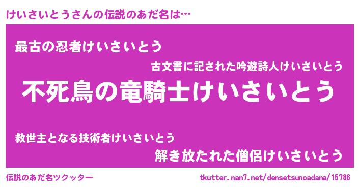 | ヒーロー風カッコイイあだ名 | 『スーパーケイサイトウ』『仮面ケイダー』 |