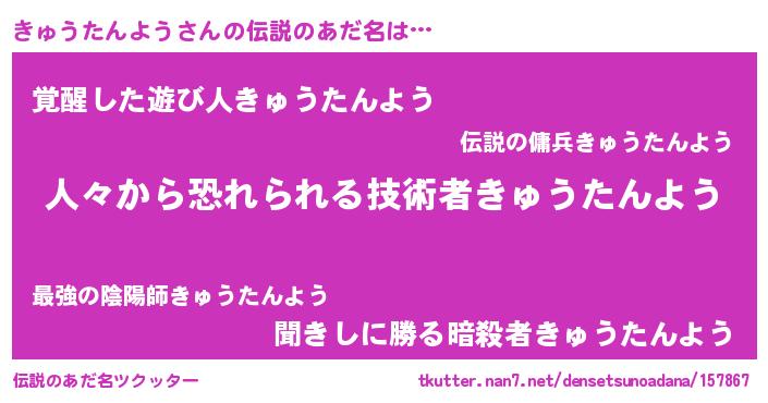 | 意味不明あだ名 | 『住所不定無職きゅうたんよう(1歳)』 |