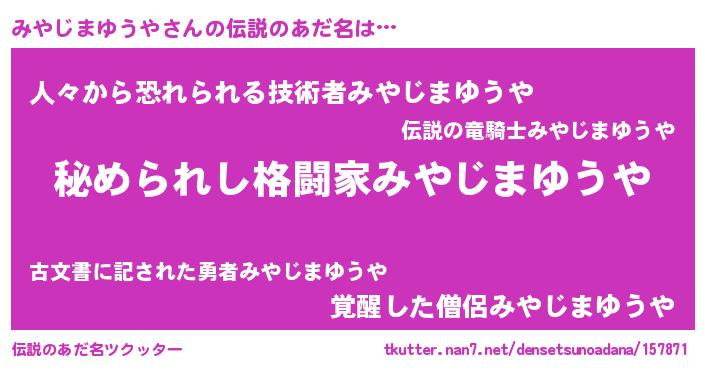 | 意味不明あだ名 | 『みやじまゆうやフォーエバー』 |