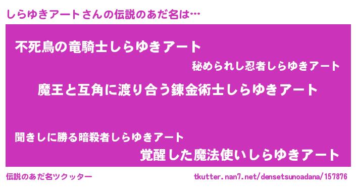 | ヒーロー風カッコイイあだ名 | 『愛の使者しらゆきアート』 |