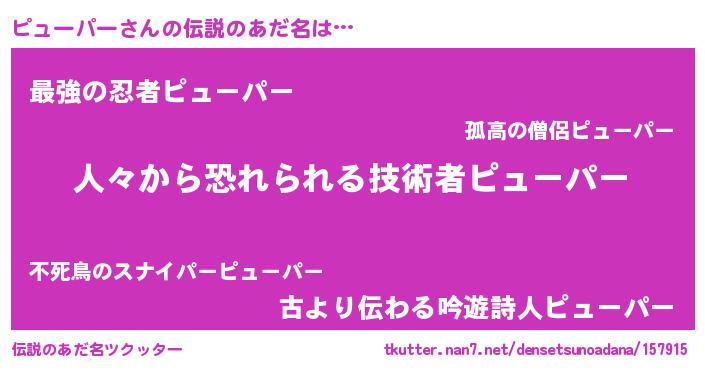 | ヒーロー風カッコイイあだ名 | 『正義の使者ピューパー』『仮面ピュダー』 |
