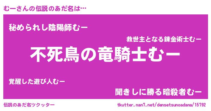 | 女子向けラノベタイトル風あだ名 | 『むー姫と円卓の騎士』 |