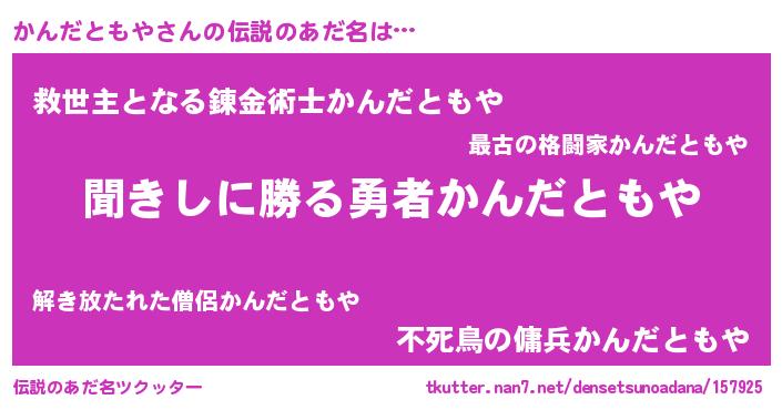 | 意味不明あだ名 | 『永久保存かんだともや』 |