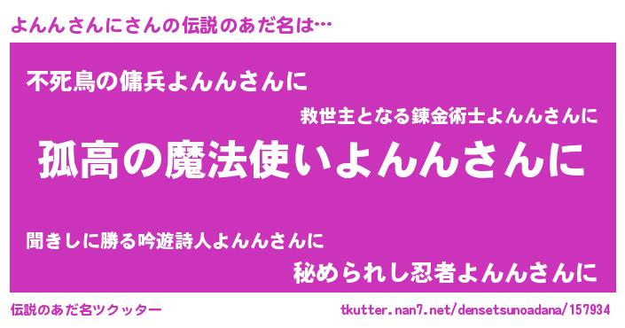 | 意味不明あだ名 | 『住所不定無職よんんさんに(8歳)』 |