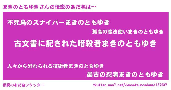 | ヘコむあだ名 | 『まきのともゆき(笑)』『まきにゅー』 |