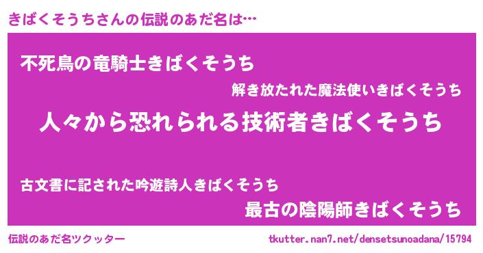 | ヒーロー風カッコイイあだ名 | 『仮面キバダー』『スーパーキバクソウチ』 |