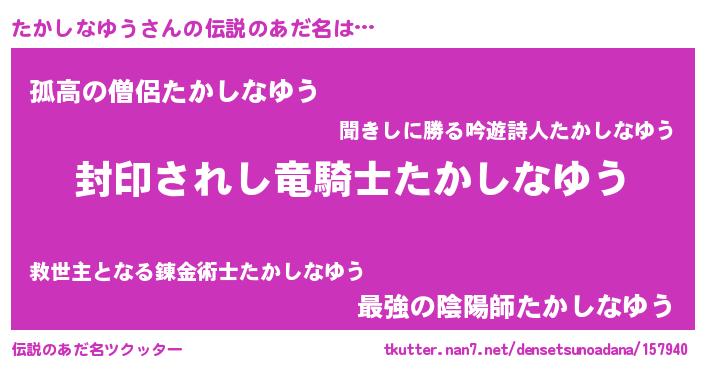 | 意味不明あだ名 | 『自称たかしなゆう』 |