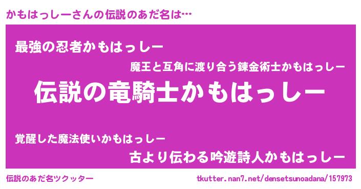 | ヒーロー風カッコイイあだ名 | 『ウルトラ戦士カモハッシー』 |
