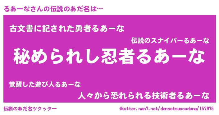 | ヘコむあだ名 | 『つくし』『るあーな(苦笑)』 |