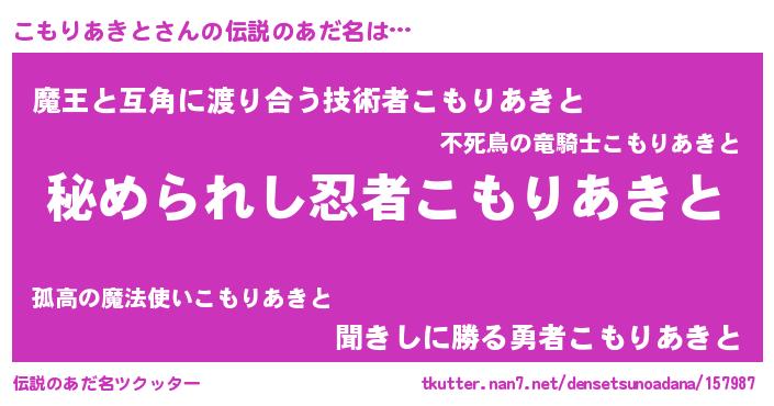 | 肩書あだ名 | 『こもりあきと大統領』 |