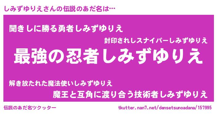 | ヒーロー風カッコイイあだ名 | 『ウルトラしみずゆりえマン』 |