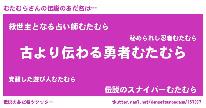 | 意味不明あだ名 | 『永久保存むたむら』『自称むたむら』 |