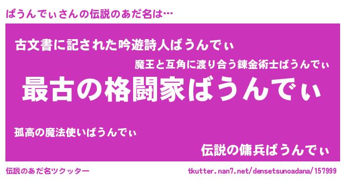 | 意味不明あだ名 | 『ばうんでぃフォーエバー』 |