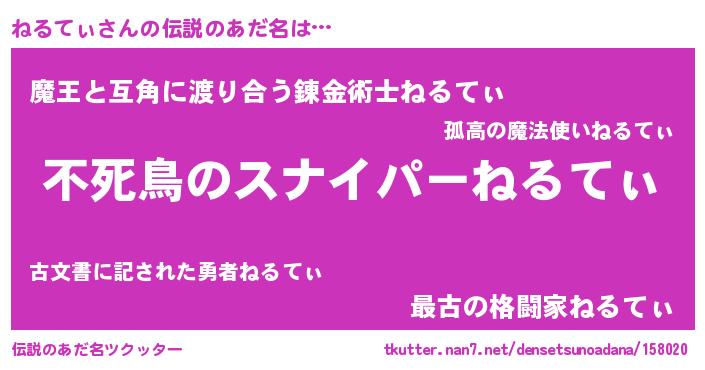 | ヒーロー風カッコイイあだ名 | 『スーパーネルティ』『仮面ネルダー』 |