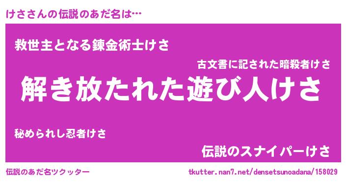 | 意味不明あだ名 | 『住所不定無職けさ(91歳)』『自称けさ』 |