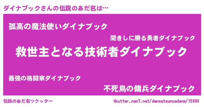 | 意味不明あだ名 | 『住所不定無職ダイナブック(13歳)』 |