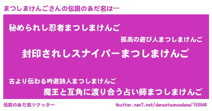 | ヒーロー風カッコイイあだ名 | 『スーパーマツシマケンゴ』 |