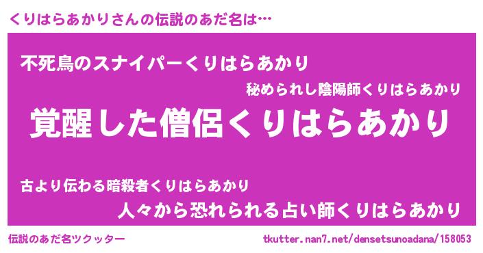 | 意味不明あだ名 | 『とにかく怪しいくりはらあかり』 |