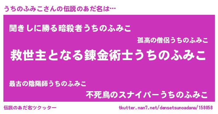 | ヒーロー風カッコイイあだ名 | 『慈愛の使者うちのふみこ』 |