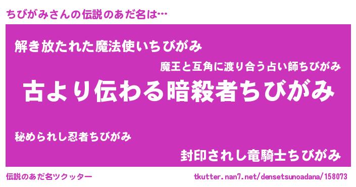 | 胡散臭い通販商品みたいなあだ名 | 『来世でも幸せになれる健康食品…その名も「ちびがみ」』 |