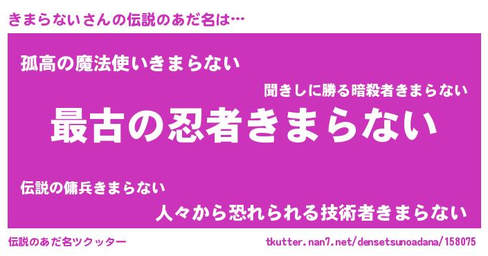 | ファンタジー風あだ名 | 『エターナルキマラナイー』『ゼキマトゥ』 |