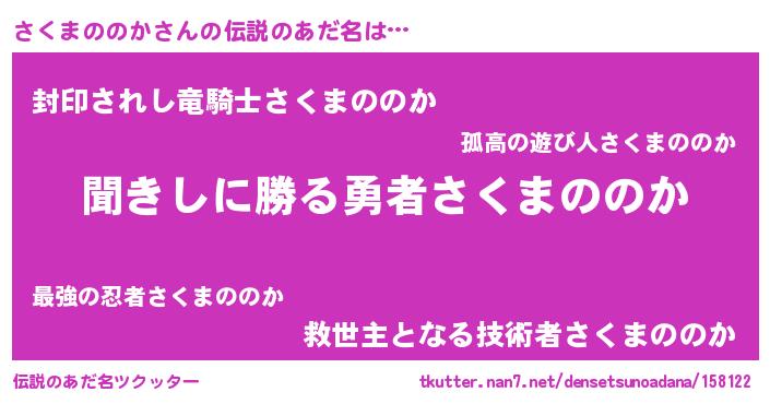 | 意味不明あだ名 | 『自称さくまののか』 |