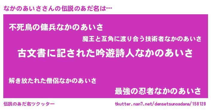 | ヒーロー風カッコイイあだ名 | 『ネオナカノアイサ』『仮面ナカダー』 |