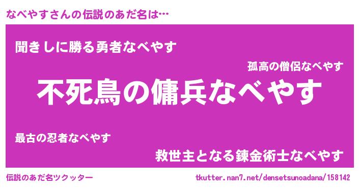 | 男性向けラノベタイトル風あだ名 | 『魔法科高校のなべやす』 |