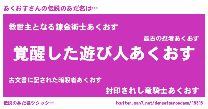 | ヒーロー風カッコイイあだ名 | 『最強戦士アクオス』『炎刃騎士アク』 |