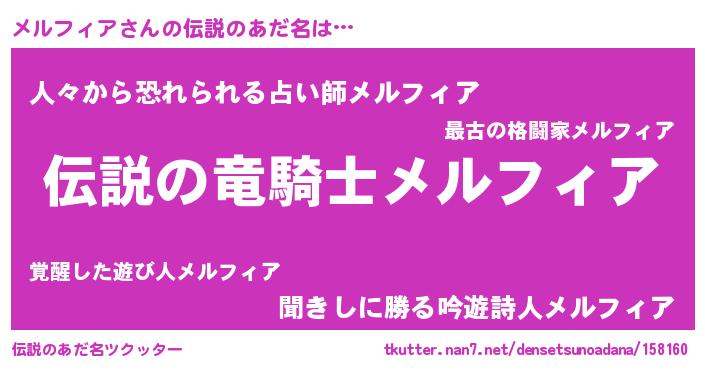 | ヘコむあだ名 | 『メルにー』『メルフィア(爆)』 |